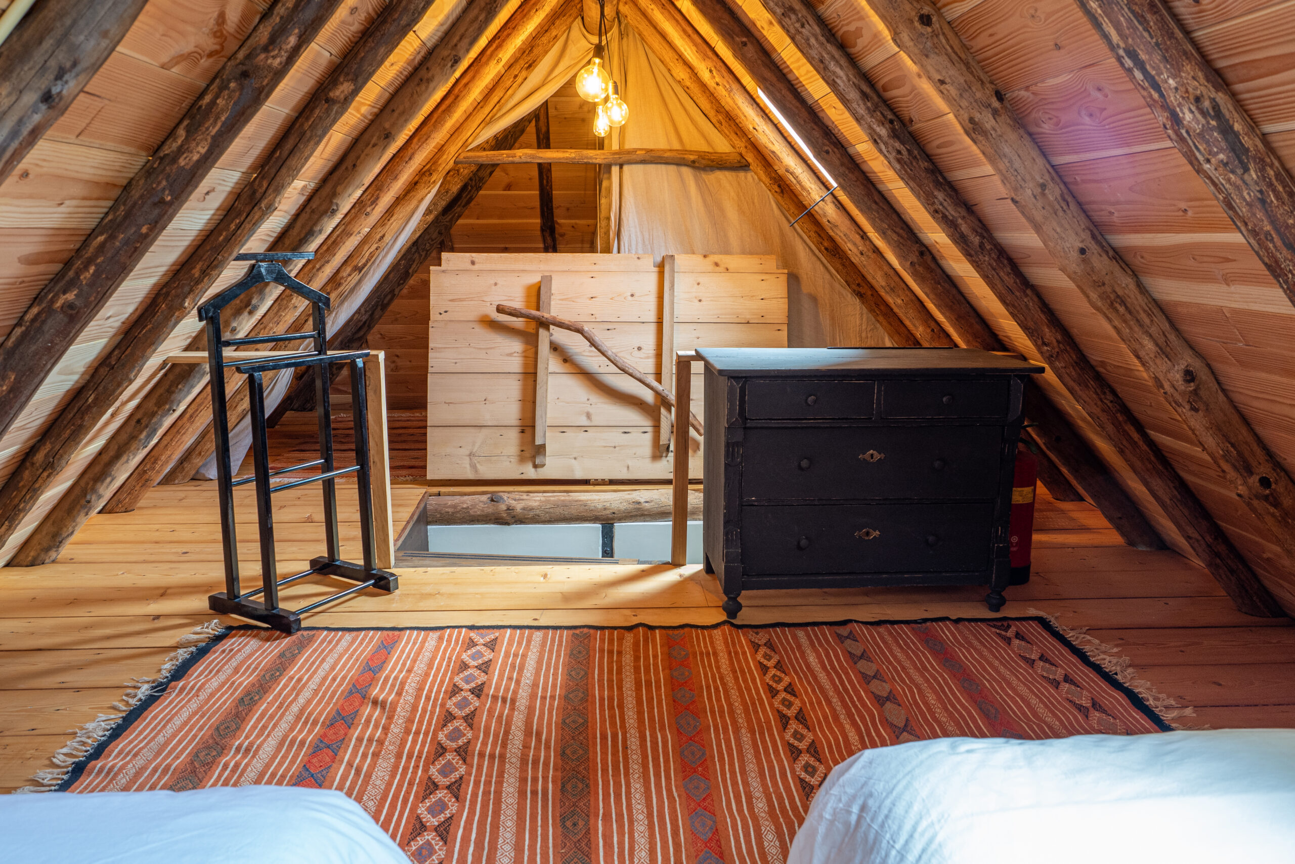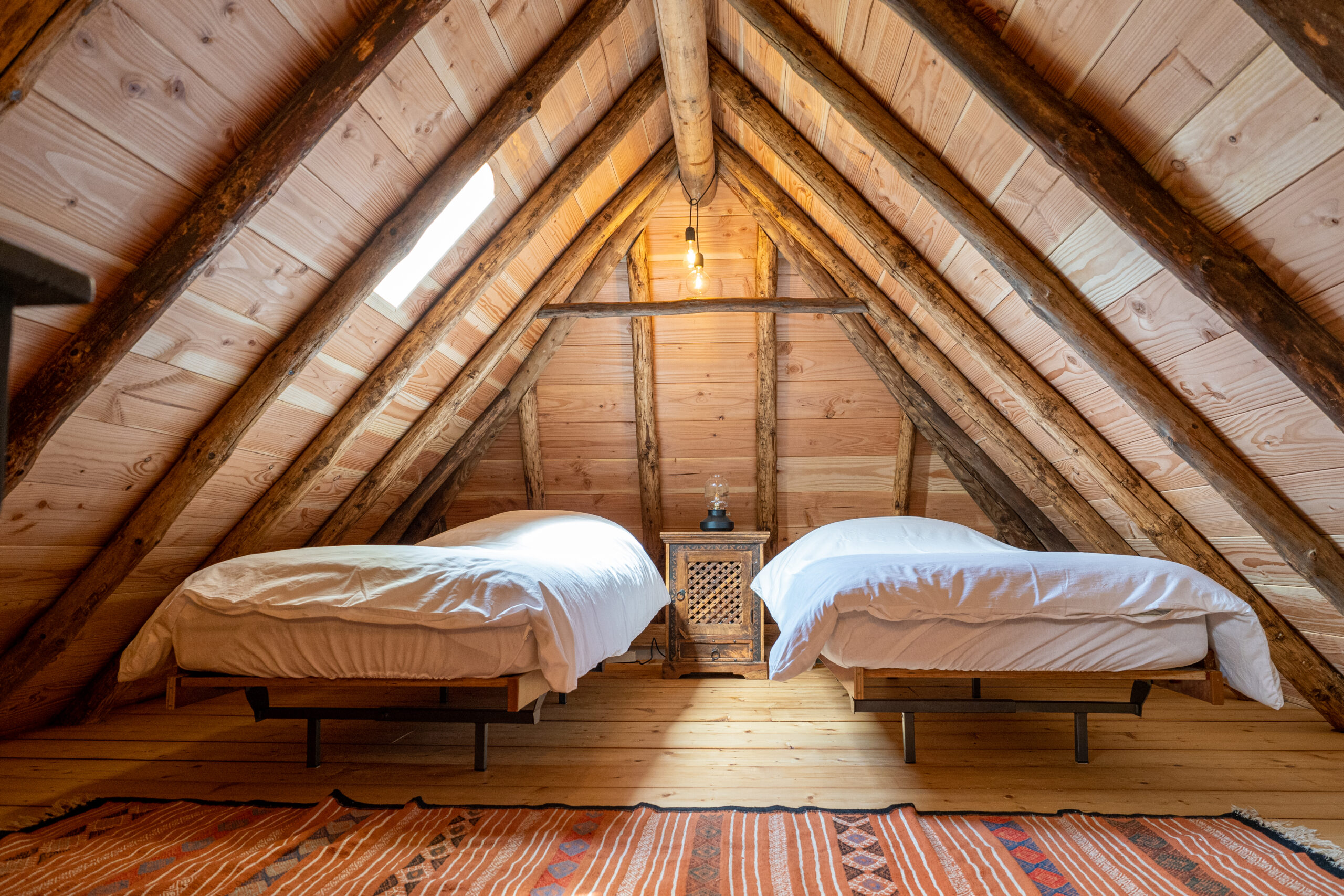 Het huisje is voorzien van vloerverwarming en heeft een keuken, woonkamer, badkamer met douche en een knusse bovenverdieping . Hier staan 2 losse bedden tot uw beschikking die naar wens tot een tweepersoonsbed kunnen worden geschoven. Mocht u met meer dan 2 personen komen, dan is er de mogelijkheid om gebruik te maken van de slaapbank beneden of een eventuele extra matras op de bovenverdieping.